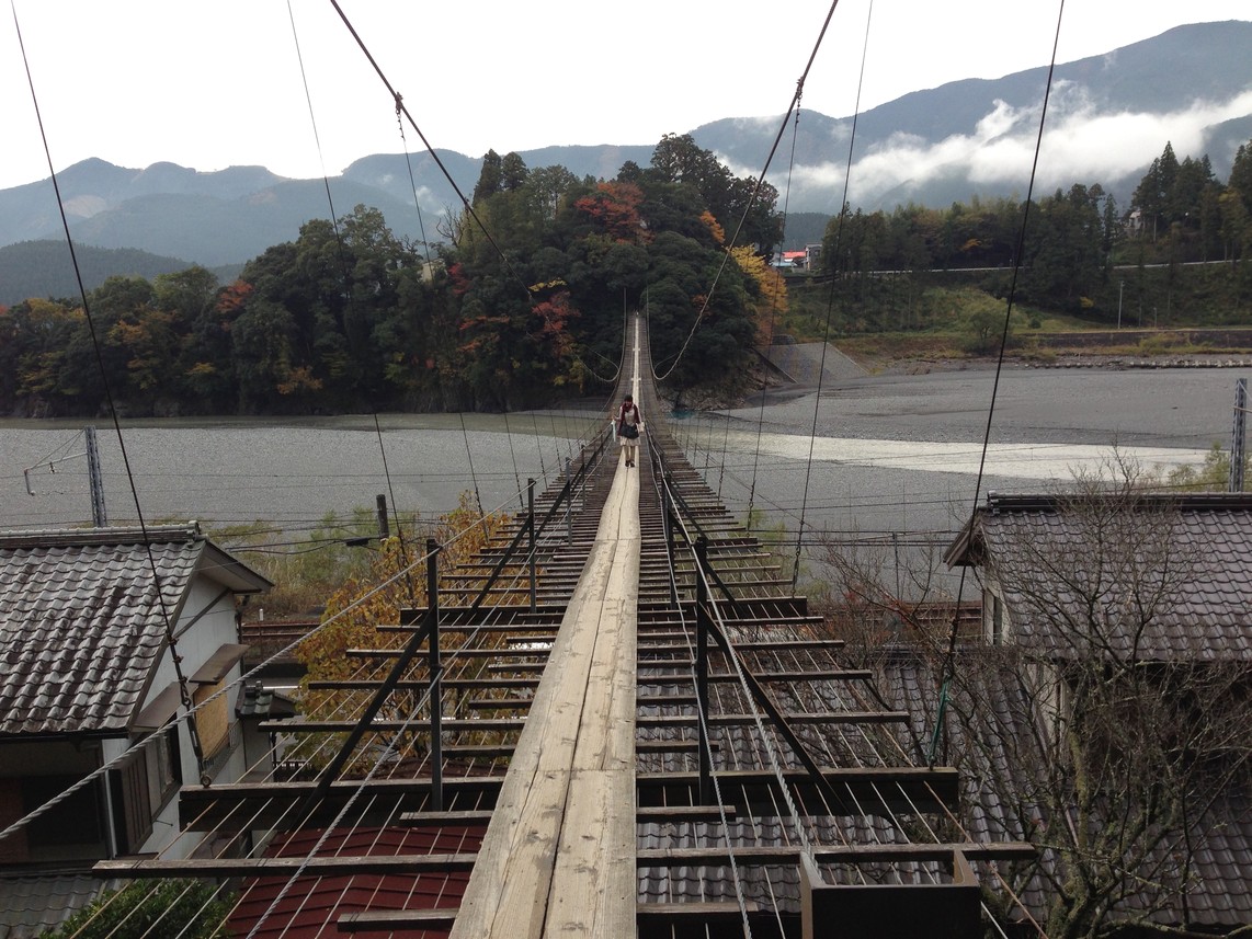 吊り橋があります。生活用の橋だそうですが、夜渡るのは自殺行為ですね。