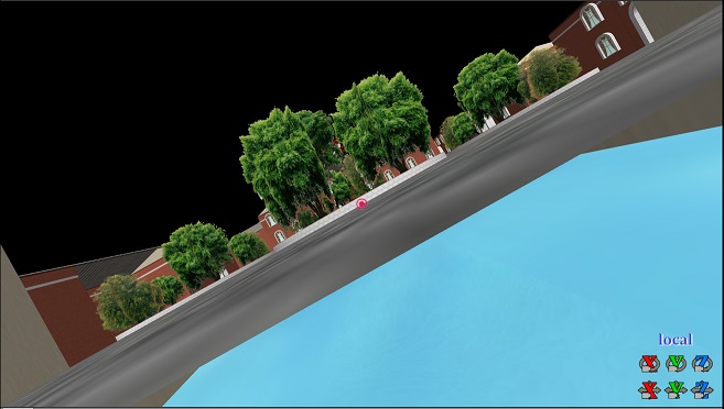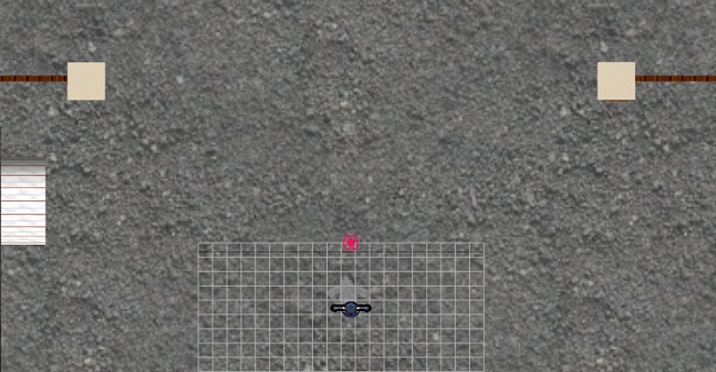 させます。このとき、カメラのターゲット(赤丸)と、今の実際の
