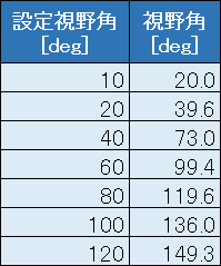 2、設定視野角と実視野角の関係性を知る。
